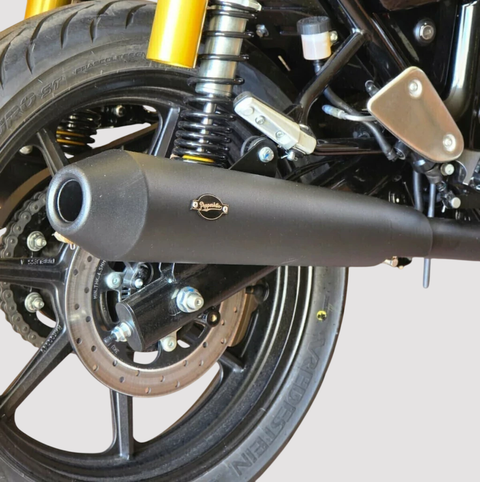Par de Silenciadores Standard aptos para tu Interceptor 650, Continental GT, Shotgun y Super Meteor. Compatible al 100% con tu moto, no hace falta modificar nada para su instalación. Con tres variantes en color negro microtexturado, en acabado de acero inox. o en acabado cromado, y un sonido que anula los agudos / medios para dar darle mas presencia y nitidez al momento de acelerar. Estos silenciadores son una muy buena alternativa para encontrar esa estetica y ese sonido que buscas para tu moto!